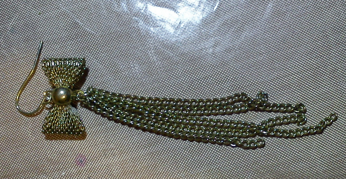 I started with giving the whole surface a coat of heavy crackle paint from Deco Art. Then I arranged some metal parts from my ,,junk drawer'' including an old earring with a nice chain tassel.
