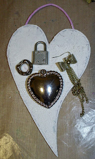 Today I want to share another MDF heart I have altered. There were some leavings of paper on the heart, but I thought it would give more interesting texture to the background so I left them.